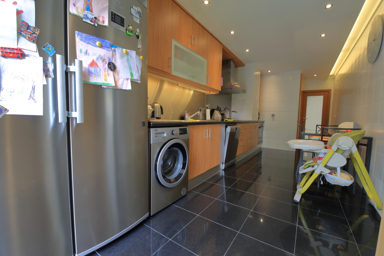 Composto por Hall de entrada, Sala com 38,50 m², cozinha equipada com frigorifico, arca, máquina de lavar loiça, roupa, caldeira, placa de vitrocerâmica com 6 bocas de indução e 2 mistas, forno e exaustor;